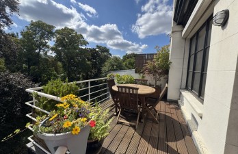A deux pas de la Place Stéphanie, dans un ancien hôtel particulier de style Beaux-Arts bâti en 1907 par l'arhitecte Oscar Francotte, prenez l'ascenseur et entrez directement dans un magnifique duplex (245m² selon PEB) niché aux étages 4 et 5. Vous découvrez un vaste (33m²) hall avec jardin d'hiver sous verrière menant côté jardin au séjour (54m²) sur parquet massif (avec feu ouvert), agrémenté d'une terrasse de 13m² offrant une vue exceptionnelle sur les jardins. Cuisine Poggenpohl semi ouverte, super équipée. Côté rue se nichent deux chambres sur parquet de 10m² chacune, l'une agrémentée d'une petite terrasse, un petit hall de nuit, une salle-de-bains, une buanderie, une toilette invités avec vestiaire. La partie haute abrite la chambre parentale sur parquet de 30m² avec sa petite terrasse, une grande salle-de-bains, une toilette séparée, une chambre sur parquet de 15m² avec sa salle de douche. Cet appartement merveilleusement orienté est baigné de lumière. Toutes les consommations sont individuelles. PEB : E-. Ascenseur mis aux normes. Cave en sous-sol. Possibilité d'acquérir un parking dans l'immeuble voisin. Bien rare !