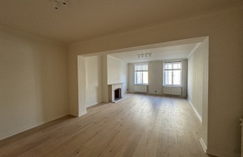 Place du Grand Sablon, face à l'église, au 1er étage (avec ascenseur) d'un bel immeuble bâti en 1879, il faut découvrir un très bel appartement totalement rénové de 115m² bruts (PEB). Il est ainsi composé : porte blindée, séjour de 38m² avec cheminée décorative et vue sur l'église, cuisine américaine de 9m² super équipée, hall de nuit avec vestiaire et placard, toilette séparée, une chambre côté jardin sur parquet de 15m² avec espace dressing et bureau de 12m², salle-de-bains avec grande baignoire et douche italienne. Le loyer inclut les charges d'entretien et d'électricité des communs. Toutes consommations individuelles. PEB : D+.
